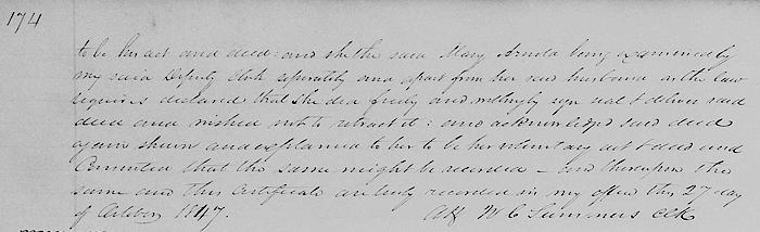 In testimony, where of the said William Arnold and Mary Arnold, his wife have here unto set their hands and seals the day and year aforesaid. It is clearly understood that the fee simple title to said a lot and appurtenances here sold and conveyed is in the trustees of the said methodist, Episcopal Church, South, and their successors in office forever, and the use of the house is only here given for the other denominations of Christians to preach in as aforesaid, but in no event is said privilege to effect the legal title to said lot and appurtenances in said trustees of said M. E. Church and their successors as aforesaid. (signed) William Arnold, Mary [her x mark] Arnold