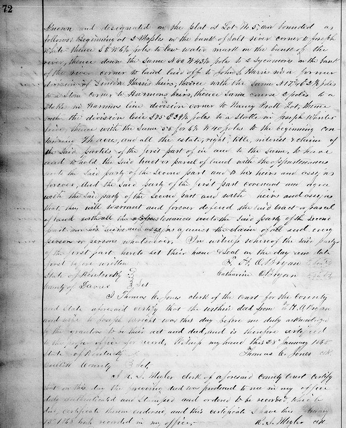 This deed made and entered into this 28th day of January 1868 by and between T. H. O'Bryan and Catharine O'Bryan, formerly Catharine Clark of Daviess County, Kentucky of the first part, and Joseph H. Wright of Jefferson County and state of Kentucky of the second part.