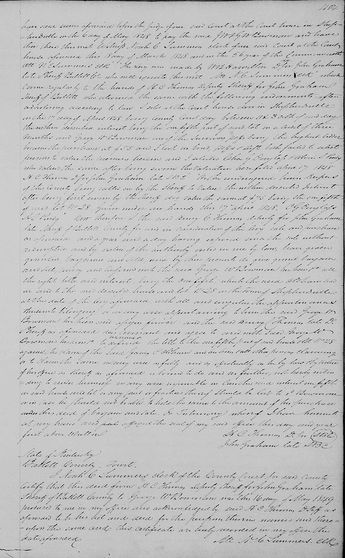 This indenture made and entered into this 14th day of May 1849 between Henry C. Thomas, deputy for John Graham, late sheriff of Bullitt County of the first part, and George W. Bowman of the same county and state of the second part.