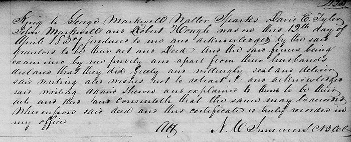 In testimony whereof the said John King, Sarah King, Lemuel King and Margaret Malvina King his wife, James King and Eleanor King his wife, Barbara King, Yelverton King and Elizabeth King have hereto set their hands and affixed their seals the day and year first written. [signed by grantors]