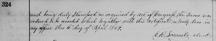 (Signed 13 Apr 1863 by A. H. Field, commissioner for N. W. & Susan Gatten, C. R. & Mary E. Samuels, G. W. Magruder, and H. O. Magruder.)