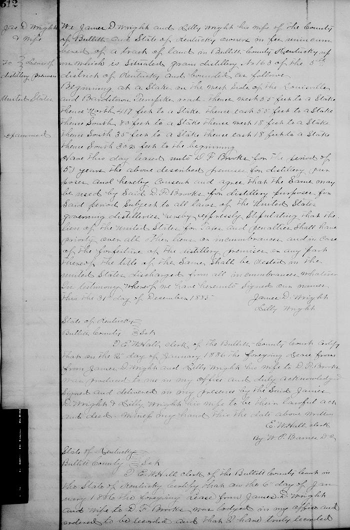 We, James, D Wright, and Lily Wright, his wife of the county of Bullitt and state of Kentucky, owners and fee unencumbered of a attractive land in Bullitt County, Kentucky on which is situated grain distillery number 163 of the fifth district of Kentucky, and bounded as follows: