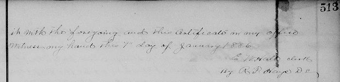 In testmony whereof we have hereunto signed our names this the 31st day of December 1885. (signed) James D. Wright, Lilly Wright.