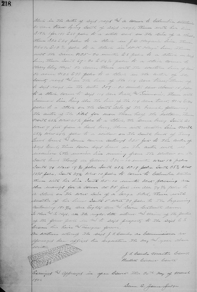 On 30 Mar 1901, J. F. Combs, Circuit Court Master Commissioner, at the direction of the court, provided a deed conveying this tract of land from the Hays family to C. L. Croan. Some years later, Croan would sell it to the county for the poor farm.