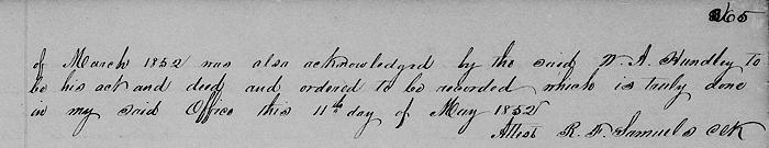 This indenture made and entered into this 28th day of March 1846 by and between William A. Hundley of the town of Mt. Washington, Bullitt County, Kentucky of the one part and James Wright of the town, county and state aforesaid of the other part.