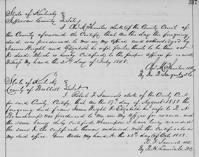 Bullitt County Deed Book O. Pages 316-317