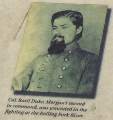 With his mission accomplished, Morgan had to get his command across the Rolling Fork and back to Tennessee. Less than three miles south of Lebanon Junction, Union Col. John Marshall Harlan’s infantry, with a battery of artillery, finally caught the Confederates. Here, Harlan attacked Morgan’s rear guard, wounding Col. Basil Duke. Despite Harlan’s action the Confederates managed to cross the Rolling Fork. They moved south and burned the trestle at Boston before heading on to Lebanon.