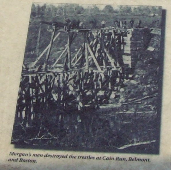 In December 1862 Morgan’s cavalry undertook its most successful Kentucky raid. The northern advance of this raid ended near Lebanon Junction. On December 28, Morgan burned the two trestles on Muldraugh Hill. That same day he sent a detachment of men under Maj. Robert S. Bullock to burn the trestles at the Rolling Fork, Cain Run and Belmont.