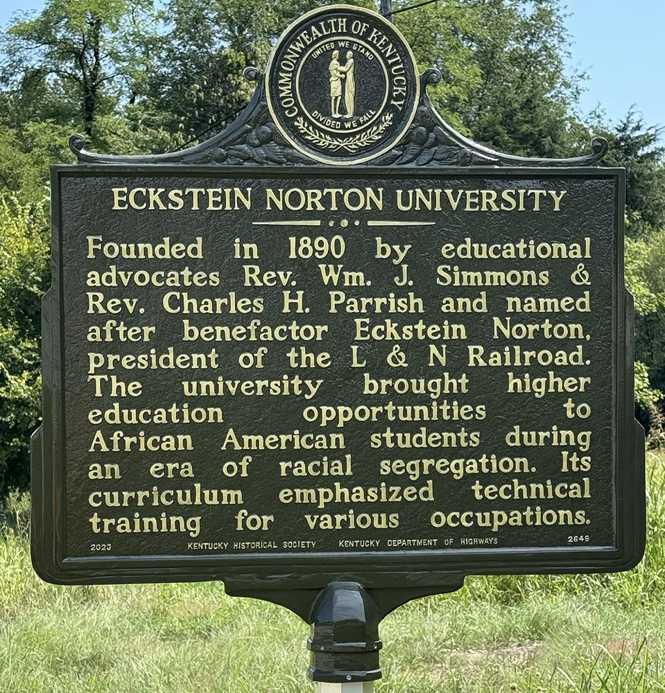 Description: Founded in 1890 by educational advocates Rev. Wm. J. Simmons & Rev. Charles H. Parrish and named after benefactor Eckstein Norton, president of the L & N Railroad. The university brought higher education opportunities to African American students during an era of racial segregation. Its curriculum emphasized technical training for various occupations.