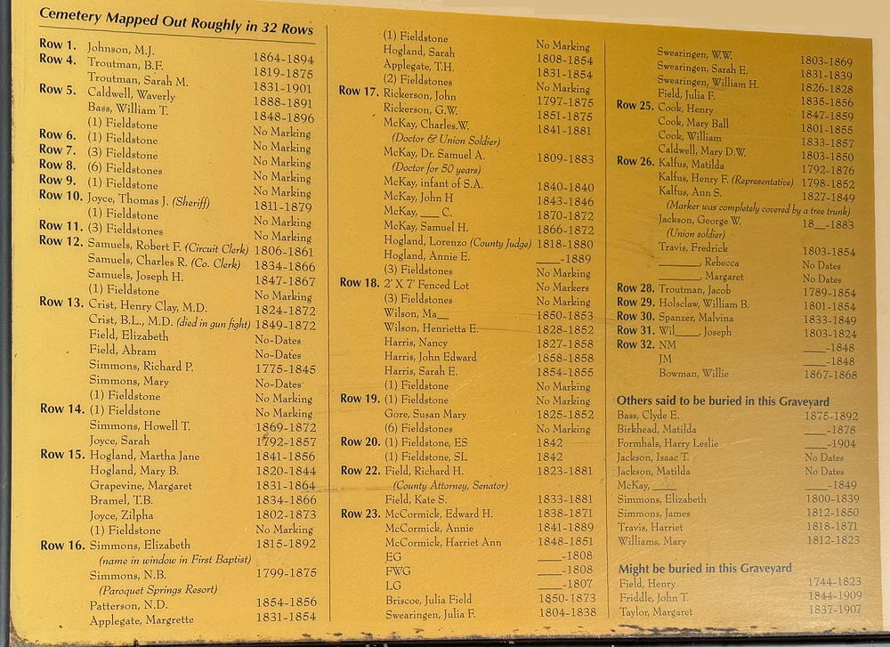 The marker contains a list of known burials in this early cemetery, as shown below. We have attempted a transcription below. the image.