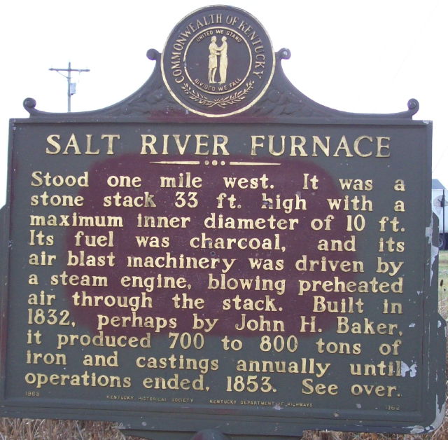 This historical marker describes the Salt River Furnace. The marker is shown below, and beneath it is a transcription of its contents.