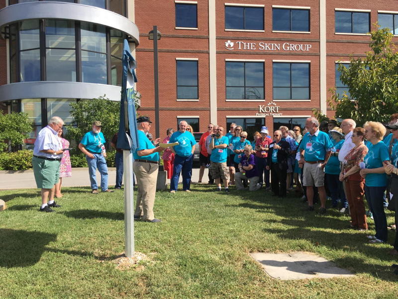 An image of the marker is shown below, followed by a transcription. Beneath the transcription are a collections of photos taken at the dedication.