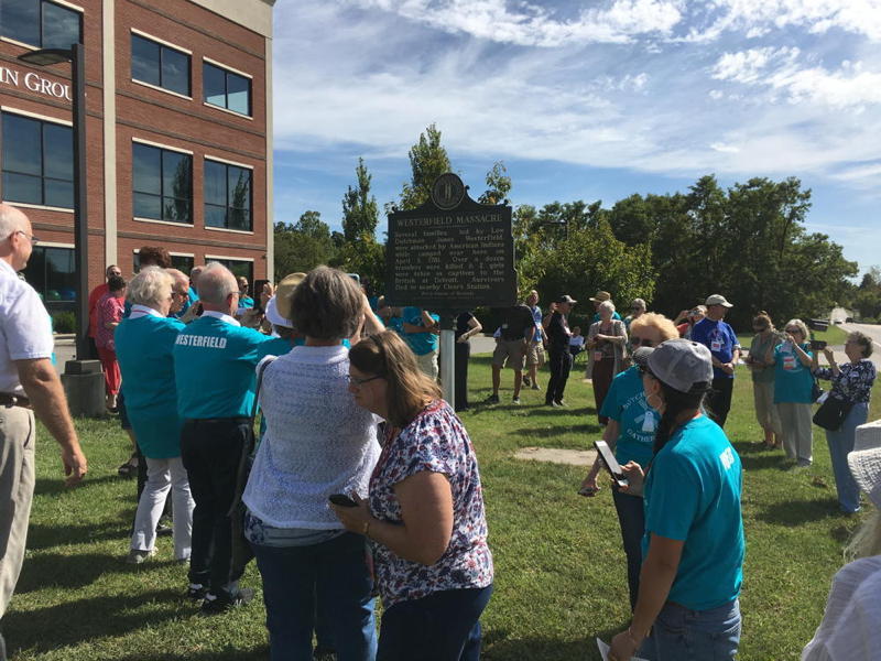 This historical marker describes the Westerfield Massacre. It is located at 1868 W Hebron Lane, near the Brooks interstate exit, and was formally dedicated on 14 Sep 2019 by the Dutch Cousins of Kentucky.
