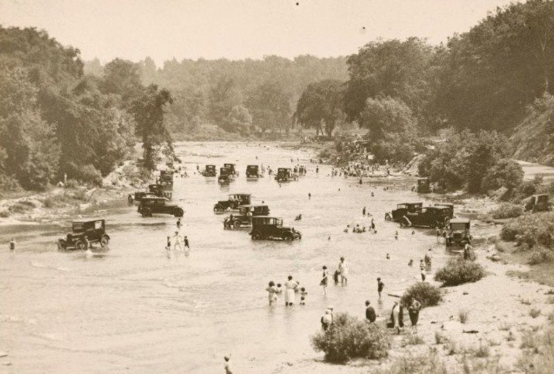 A good, cool, clean stream makes a perfect place to pass some time on a hot summer day. I recently drove over to Otter Creek Park in Meade County to check the location of a car-washing photo from around the 1920's. I think I found the place, which turned out to be pretty easy. There must have been a hundred people when I got there, swimming, playing, and laughing in the same spot as people were nearly a century ago. The only real difference was that cars were no longer allowed.