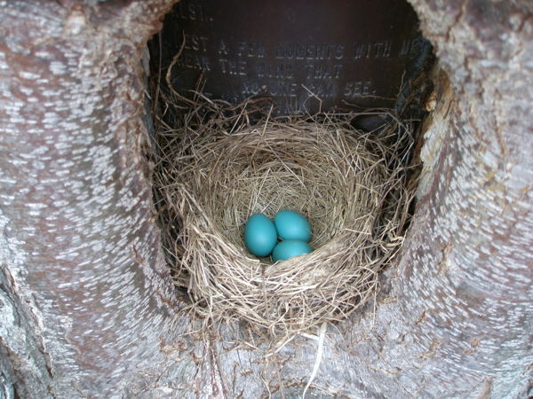 Many years ago, I made a bronze plaque with a little poem that I wrote as if the tree was speaking, and mounted it on a favorite wild cherry tree in my yard. The tree has now grown so much that the plaque sits embedded six inches into the trunk. Birds nest in its hollow. The poem reads,