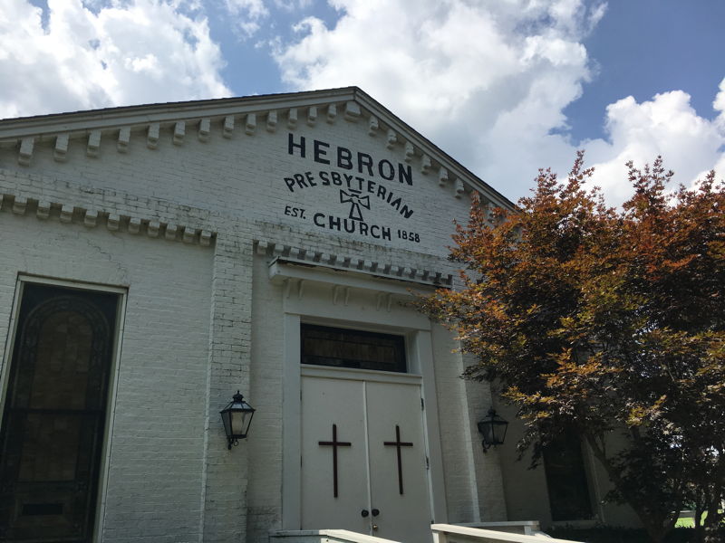 In the case of Hebron Lane, it was Hebron Presbyterian Church. The historic old church building first opened on March 28, 1858, and that original structure is still in use today, faithfully maintained by its members. Organizing-members first met at what was known as the "old brick schoolhouse" for two years before erecting the church building on land next to the schoolhouse that was donated by Miss Mary Wilson. Construction was begun and supervised by R. K. Summers. Brick for the building was made onsite.