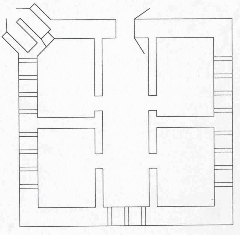 The 22 by 22 foot square solid Old Stone Jail, consisting of four cells and a hallway, is built of 22 inch thick sandstone blocks. Even the floor and ceiling are large slabs of solid stone. The stone walls and iron bars gives the jail a look of a castle or dungeon. Capacity was four to a cell, using, at one period, four canvas cots hung between walls. So total capacity was up to 16, but I am told that (not verified) there were a couple of times when big brawls and parties were raided, and they packed fifty to seventy-five briefly.