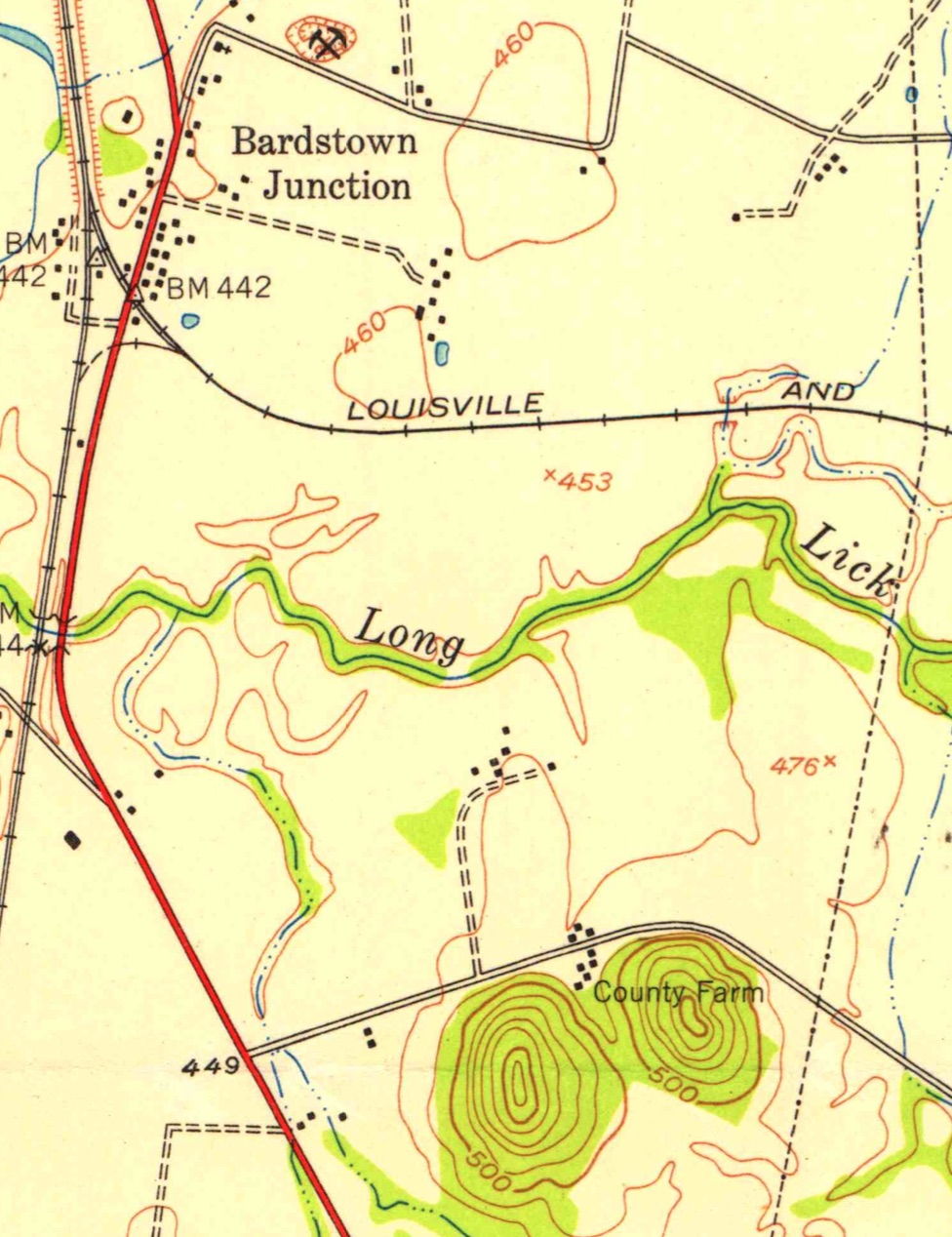 As many as twenty-two people at a time lived on the Poor Farm, but that was before Joe Raley's time. With the creation of old age pensions by the government, the number of Poor Farm residents decreased as "Homes" started coming into existence that were willing to take the pension money for their care. In 1954, some of the farm was sold for a right-of-way for the new "Kentucky Turnpike" toll road, later to become Interstate 65.