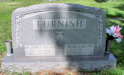 Returning to his practice, Dr. Furnish married Ruby Carlin in 1916, moving into her parents' house which I mentioned to you earlier. Furnish set up his practice at the Carlin home and maintained that office until just before he died in 1972.