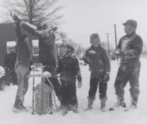 Oh, but it was so grand! Friends came from all around; a huge bonfire was started; people brought hotdogs and hot chocolate and snacks of all kinds. Sleds of every variety appeared, including improvised ones. One of the best sleds was a large old Coke sign sort of shaped like a big bottle cap, on which five people could ride as it spun its way down the hill. An additional thrill was the risk of going into the old baptizing creek at the bottom of the hill, if you went too far. Indeed, a couple of years later, the old Coke sign was lost in just that way, never to be seen again.